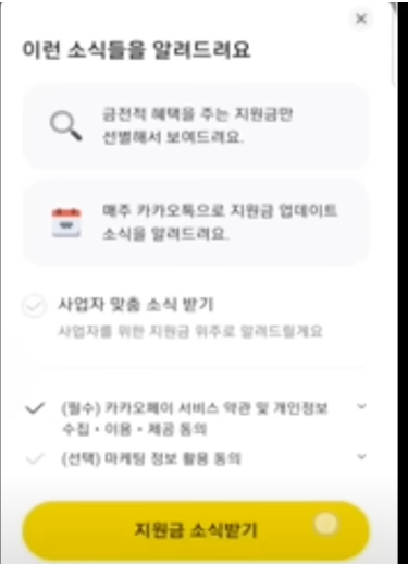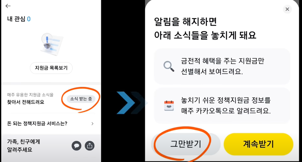 정부지원금 카카오톡 받기 설정 방법