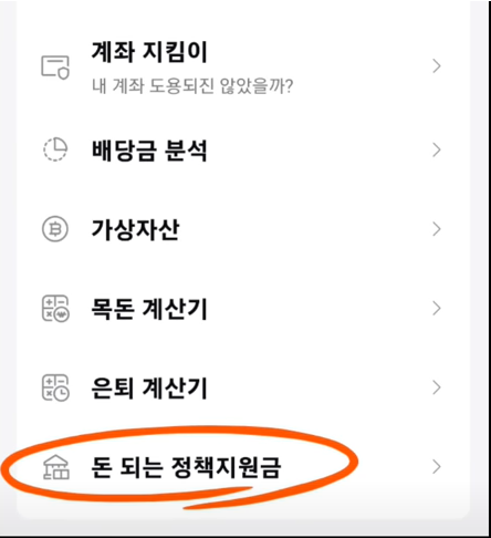 돈 되는 정책 지원금이 있습니다 돈 되는 정책 지원금을 클릭합니다.