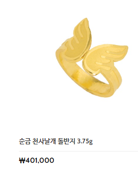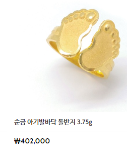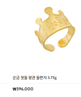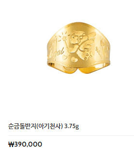 돌반지 1돈 기준 가격은 30만 원 후반대에서 40만 원 초반대에 구매가 가능하십니다.