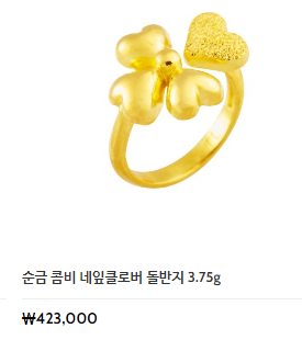돌반지 1돈 기준 가격은 30만 원 후반대에서 40만 원 초반대에 구매가 가능하십니다.