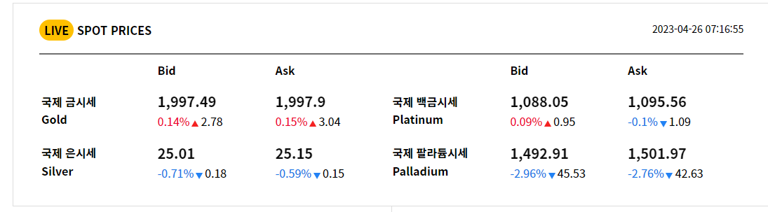 2023년 4월 26일 오늘의 금시세입니다.