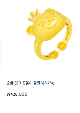 1g 돌반지 선물도 찾아 보았습니다. 1g은 상대적으로 가격이 괜찮아 뜻깊은 선물 드리고 싶을때 유용할 것 같습니다.