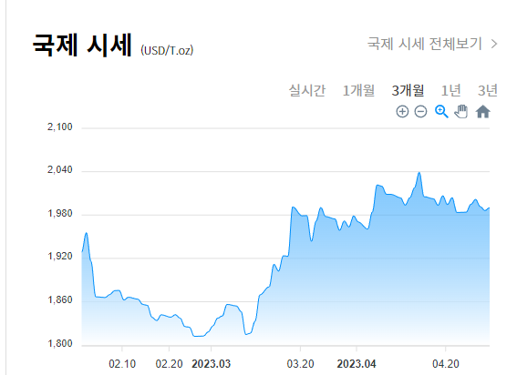 비록 금이 경제적 불확실성 동안 전통적으로 안전 자산이지만 , 완고한 인플레이션은 연준의 통화 긴축을 연장시켜 제로 수익률 금에 대한 매리트를 떨어트렸습니다. 시장에서는 미국 연방준비제도이사회(FRB)가 5월 2~3일 금리를 25 베이시스포인트 인상할 가능성이 87%에 달하였습니다.