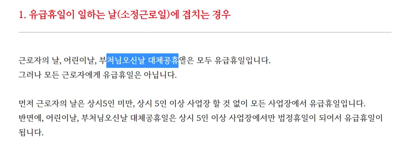 석가탄신일 대체공휴일 휴일근무 수당 지급 여부