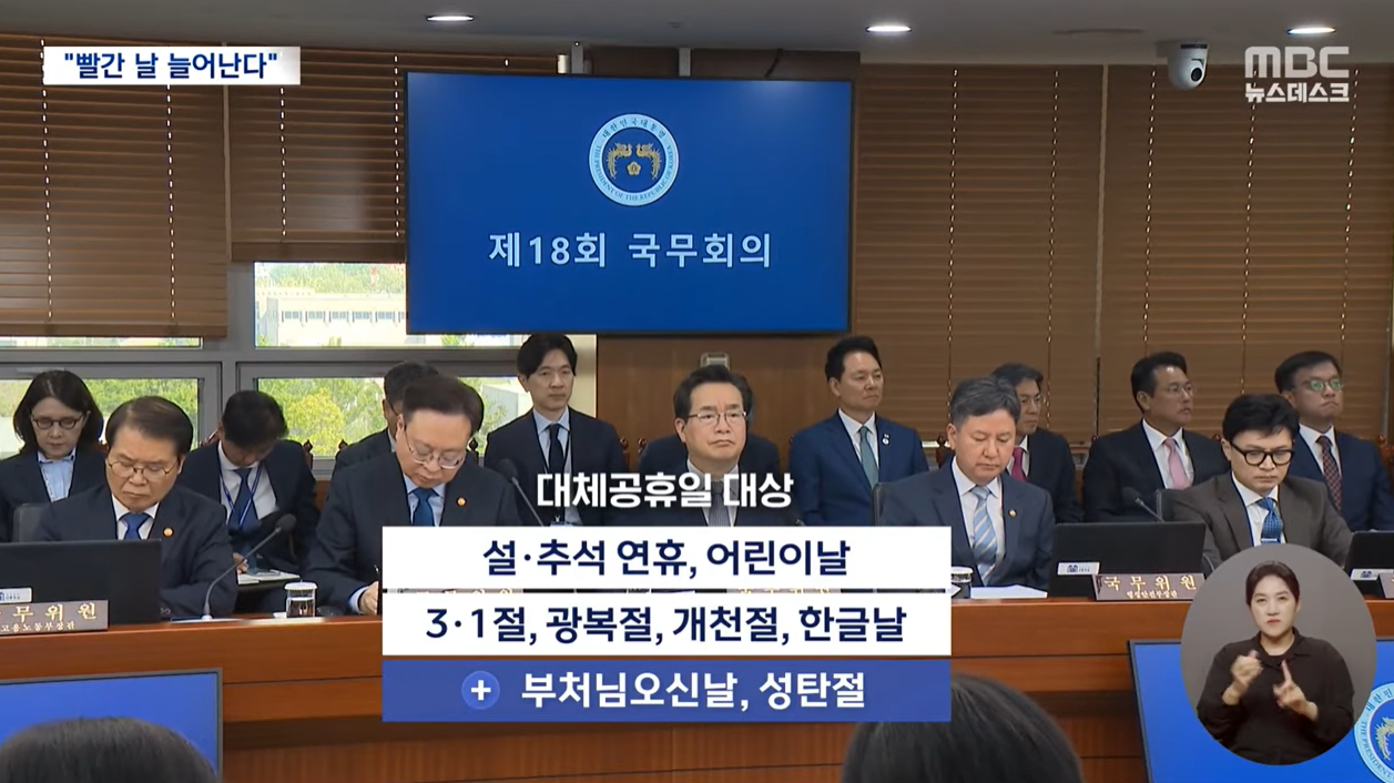 이에 따라 공휴일 중 대체공휴일이 적용되지 않는 날은 1월 1일과 현충일인 6월 6일만 남게 됐습니다. 올해부터 부처님 오신 날과 성탄절에도 대체 공휴일이 적용됩니다.