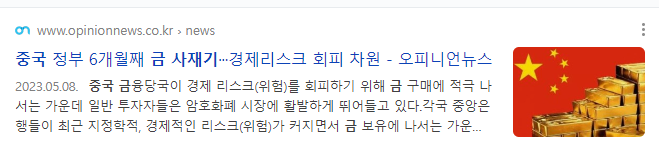 중국 6개월째 금 사재기개인은 암호화폐 올인 최근 지정학적, 경제적인 리스크(위험)가 커지면서 각국 중앙은행들이 금 보유에 나서는 가운데, 중국 정부가 6개월 연속 금 보유고를 늘리고 있다고 블룸버그통신이 7일(현지시간) 보도했다. 중국 외환관리국에 따르면 중국은 지난달 8.09t의 금을 추가로 확보해 총보유량이 2천76t으로 늘어났다.