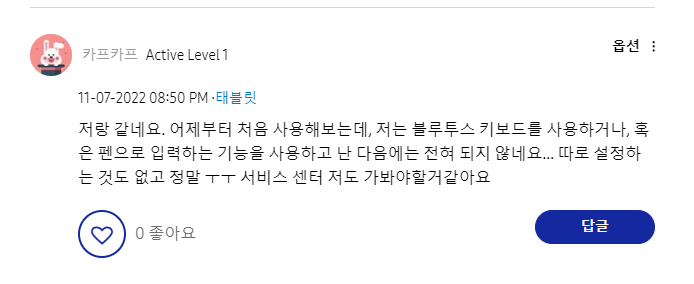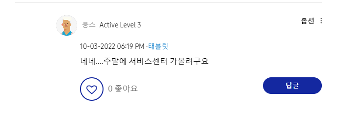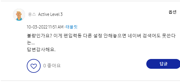 저만 그런줄 알았는데 같은 문제로 어려움을 겪고 계시는 분들이 많아 놀랐습니다. 일부 고객들은 직접 삼성 AS 센터까지 방문을 하셨다고 하는데요.. AS센터 방문하시기 전 꼭 아래 내용 확인해 보시고 방문하시기 바랍니다. 저도 아래 내용으로 쉽게 고쳐 사용하고 있습니다.