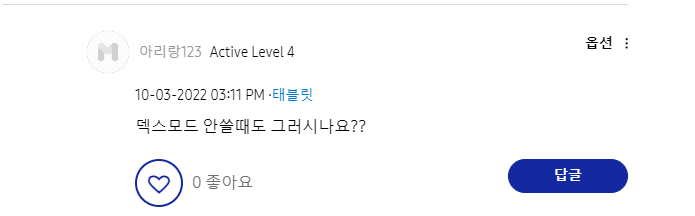 저만 그런줄 알았는데 같은 문제로 어려움을 겪고 계시는 분들이 많아 놀랐습니다. 일부 고객들은 직접 삼성 AS 센터까지 방문을 하셨다고 하는데요.. AS센터 방문하시기 전 꼭 아래 내용 확인해 보시고 방문하시기 바랍니다. 저도 아래 내용으로 쉽게 고쳐 사용하고 있습니다.