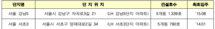 ▪ 서울 서초3단지는 국민임대(440호), 영구임대(100호), 장기전세(250호) 혼합단지입니다.
