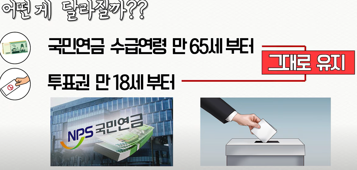 초등학교 입학 나이도 기존과 동일하게 만 6세가 된 날이 속하는 해의 다음해 3월 1일에 입학하시면 된다고 합니다. 그리고 국민연금이나 기초연금 아동수당 등 복지 혜택이 적용되는 나이와 퇴직 나이 그리고 투표권 같은 경우도 현재 만나이를 적용하고 있어서 바뀌는 건 없다고 합니다.