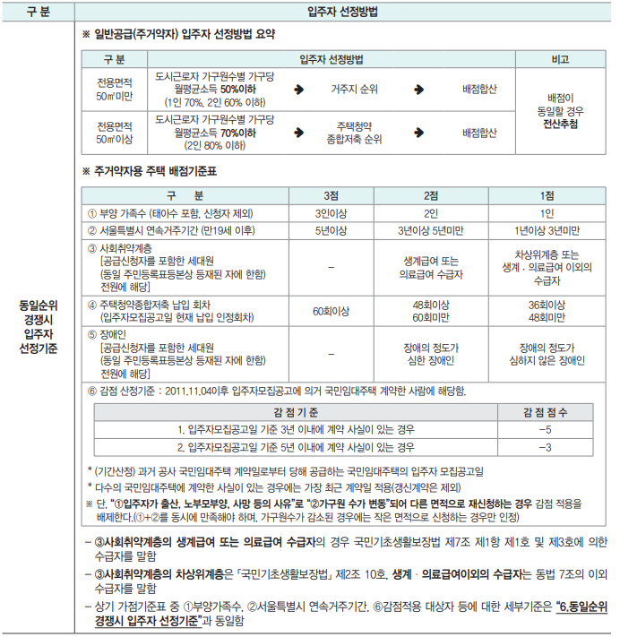서울 국민임대주택 입주자선정