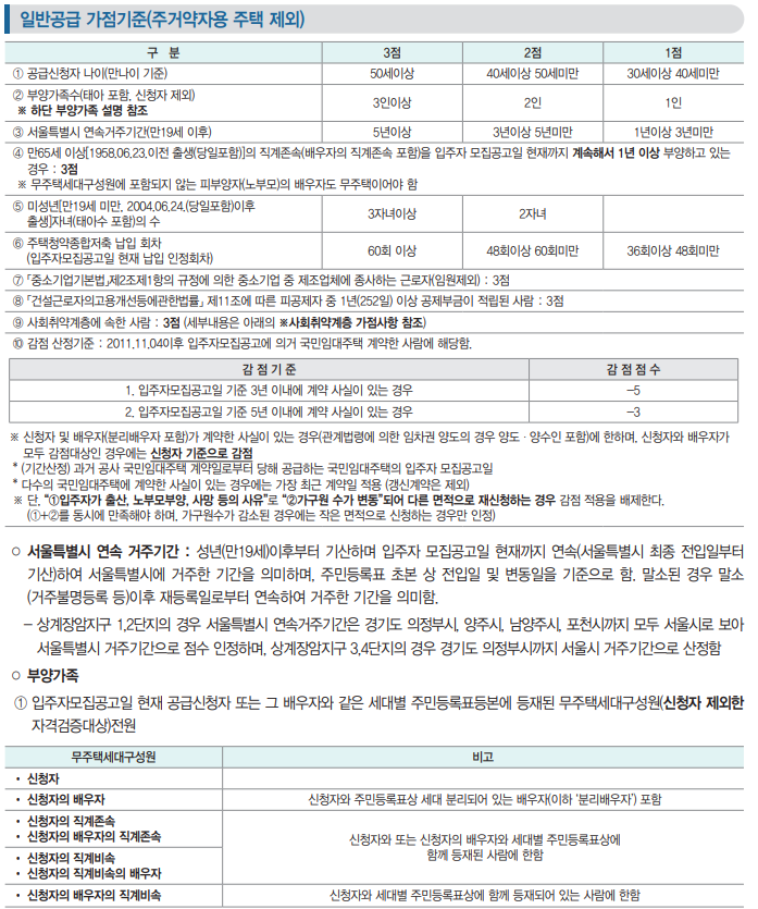 일반공급 가점기준(주거약자용 주택 제외)