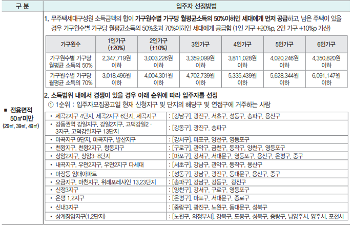 서울 국민임대주택 입주자선정