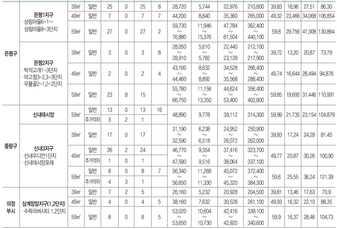 ○ 상계장암지구 1,2단지는 의정부시에 위치해 있는 임대주택으로 당첨 시 의정부시로 전입하여야 함을 양지하시기 바랍니다. ○ 주거전용면적은 주거의 용도로만 쓰이는 면적이며 주거공용면적은 계단, 복도, 현관 등 공동주택의 지상 층에 있는 면적이고, 기타공용면적은 지하층, 관리사무소, 노인정 등의 공용면적입니다.
