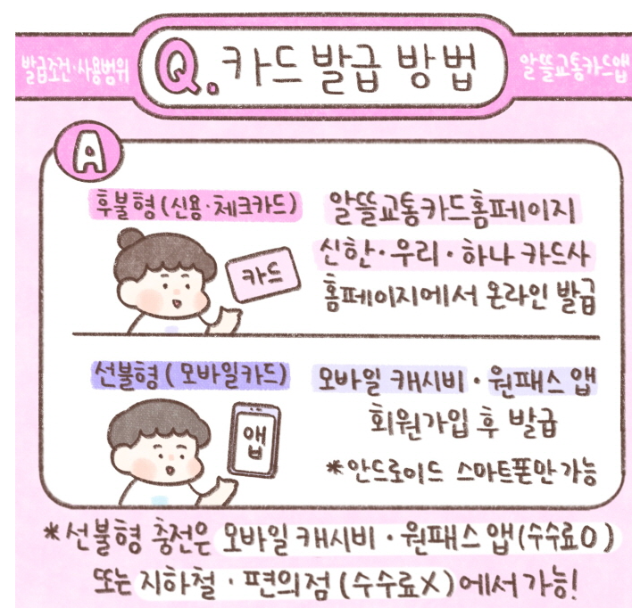 ※기존 알뜰교통카드 사용 고객은 동일 카드사 이용 시 새롭게 카드를 발급받지 않으셔도 됩니다