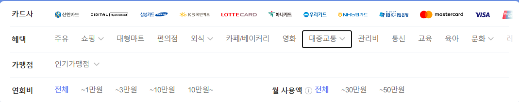 1. 카드사 확대 기존 : 신한,우리,하나,캐시비,티머니,IM원패스