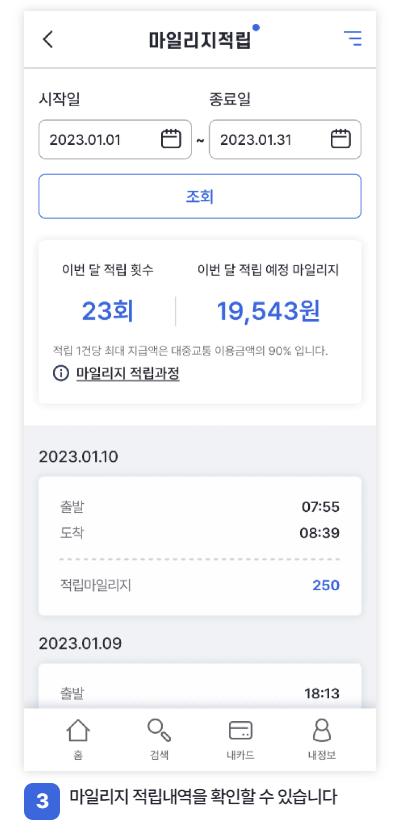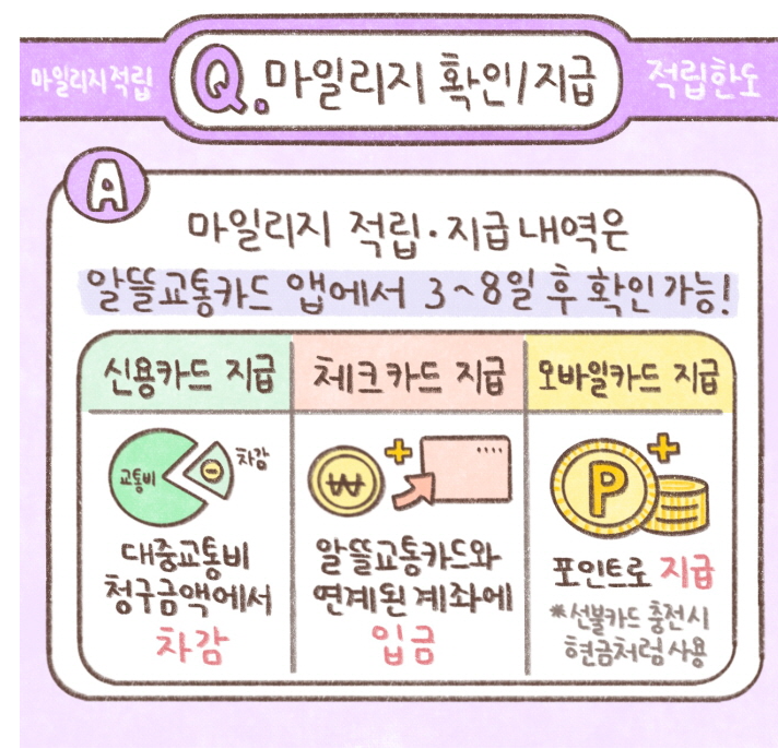 알뜰교통카드 마일리지 적립 및 지급 방법