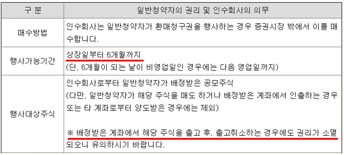 와이랩은 6개월 환매청구권이 부여가 되어 있습니다. 환매청구권은 쓸 일이 없을 것 같지만 그래도 혹시나 권리를 사용해야 하는 상황이 올 수도 있으니 주의 바랍니다.