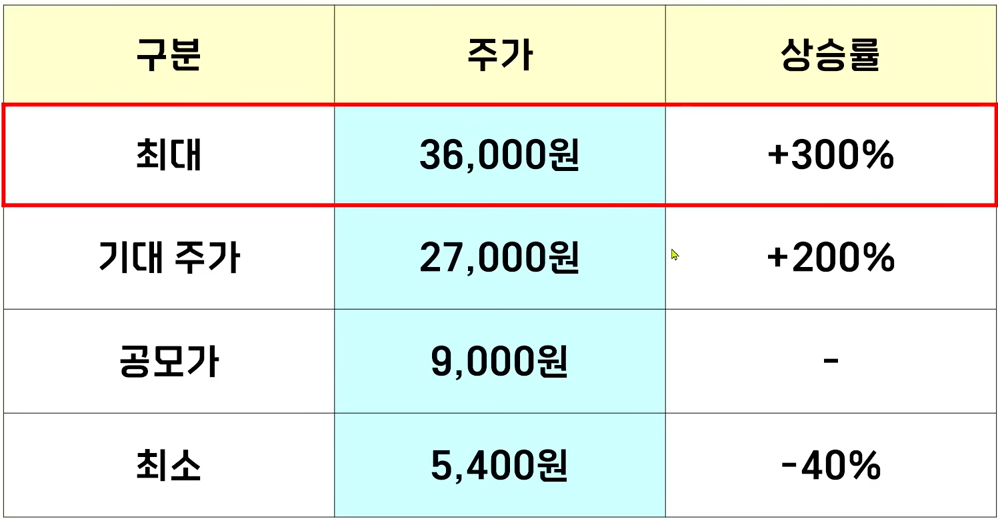 그리고이 종목은 기존 주주 대부분이 재무적 투자자로 구성이 되어 있으니까요 센서뷰 보다는 상장의 흐름이 조금 더 좋을 것이라고 저는 기대를 하고 있습니다. 그래서 센서뷰가 오늘 공모가 대비 180% 정도 상승이 나왔으니까요 와이랩은 여기에 조금 더 더해서 200%까지 상승 기대를 하고 싶습니다.