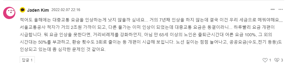 오전 6시30분 이전에 이용하는 첫 번째 대중교통은 기본요금의 20%를 할인해 주는 조조할인 혜택이 있다. 앞서 시는 시민공청회(2월), 서울시의회 의견청취(3월), 물가대책위원회 심의(7월) 등의 절차를 거쳐 대중교통 요금 조정을 확정했다. 시내버스와 마을버스는 관련 법에 따라 운송사업자 요금 신고와 수리 등 행정 절차를 마쳤다.
