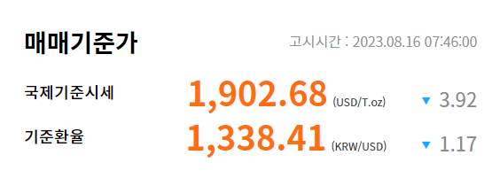 2023년 8월 오늘의 금시세 금 1돈 가격