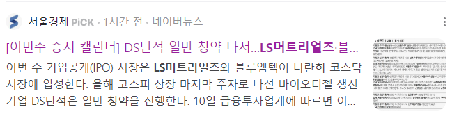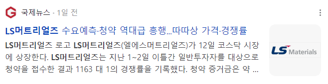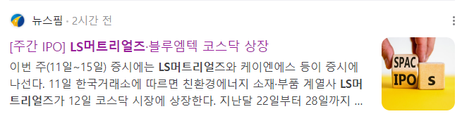 LS머트리얼즈 공모주가 12일 화요일 코스닥에 상장을 합니다. 과연 100대 1의 경쟁률을 기록한 LS머트리얼즈는 케이엔에스의 바톤을 이어받아 따따블이 가능할까요? LS머트리얼즈 청약을 해야 하는 이유에 대해서 간단하게 정리를 하였습니다.