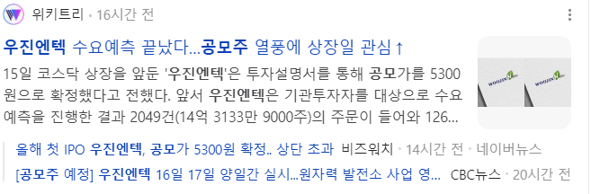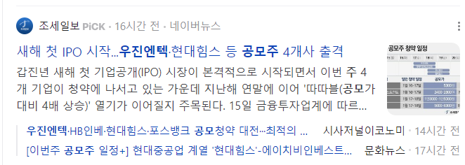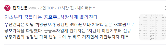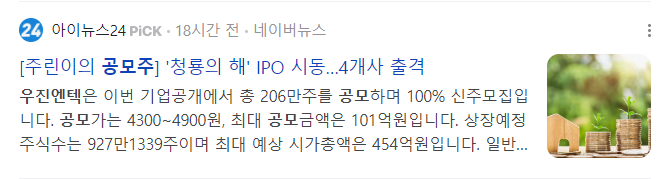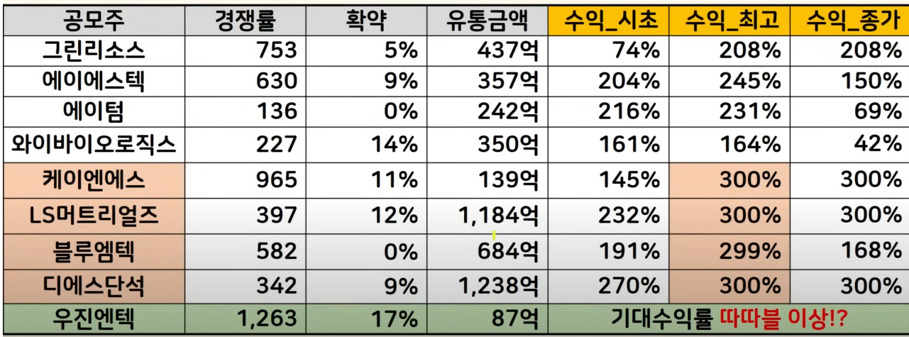 오늘 상장하는 우진엔텍 수요예측 결과 매우 좋게 나왔는데 결과 같이 보도록 하겠습니다. 과연 따따상이 가능할지요? 그리고 우진엔텍과 일정이 겹친 곳들도 같이 비교해 보겠습니다.