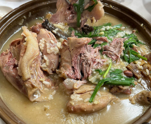 오리백숙은 오리고기를 푹 삶아낸 요리로, 지방이 적고 단백질이 풍부해 건강에 좋습니다. 오리는 체내의 열을 식혀주고, 피로 회복과 면역력 강화에 도움을 줍니다. 인삼, 대추 등을 넣어 끓이면 더욱 영양가가 높아집니다. 오리백숙은 특히 여름철에 몸을 시원하게 해주고, 오리고기의 단백질은 근육 회복과 기력 보충에 좋습니다. 인삼과 대추는 오리의 맛을 한층 더 풍부하게 만들어주며, 피로를 빠르게 회복시켜줍니다.