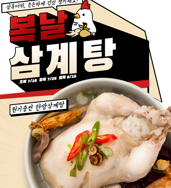 중복은 복날의 중간으로, 더위가 가장 심한 시기입니다. 이때는 기력을 보충할 수 있는 음식이 필요합니다.