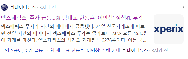 한동훈 후보의 선출 소식이 전해진 직후, 엑스페릭스 주가가 시간외 매매에서 급등했습니다. 한국거래소에 따르면, 엑스페릭스 주가는 전일 종가보다 2.6% 상승한 4530원에 거래를 마쳤으며, 시간외 거래량은 3276주를 기록했습니다. 이는 투자자들이 한동훈 후보의 선출에 따른 긍정적인 영향을 기대하고 있음을 보여줍니다.