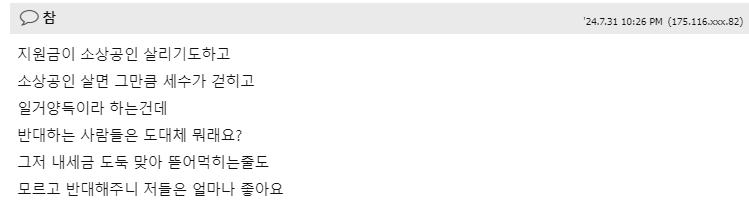 정부지원금 관련 네티즌 의견