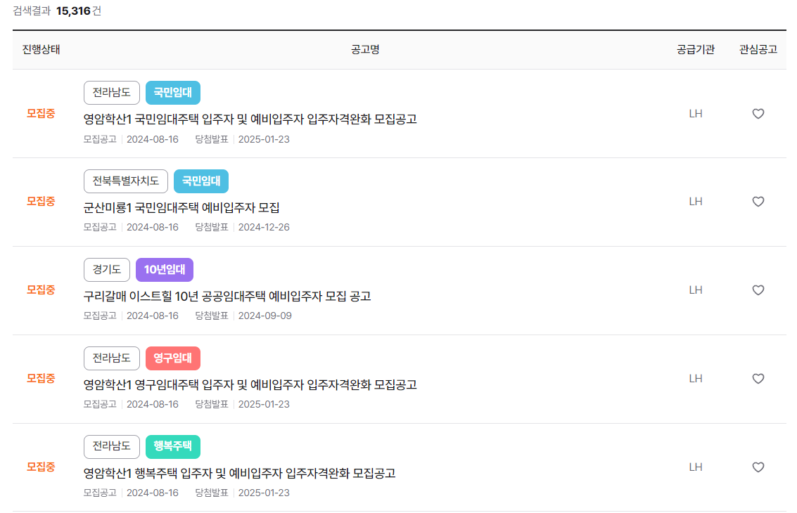- 행복주택: 대학생, 사회초년생, 신혼부부 등 젊은 층을 위한 임대.