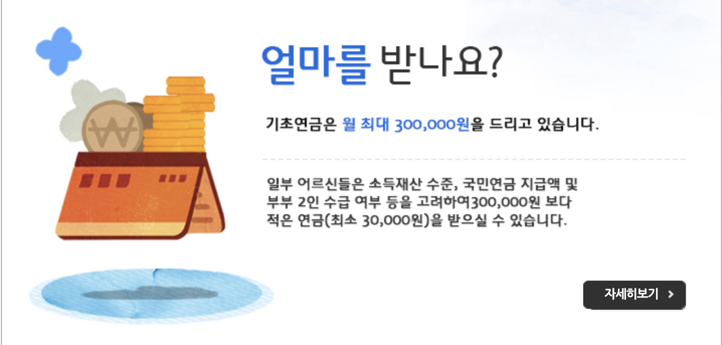 만일 거동이 불편하시다면 국민연금 지사에서 하는 '찾아뵙는 서비스'를 통해 콜센터 1335에 연락 요청하면 직접 댁으로 찾아가 신청 접수가 가능합니다. 만 65세가 되는 경우에는 생일이 속한 달의 한 달 전부터 기초연금을 신청하실 수 있으니 꼭 내용 인지하셔서 나라에서 주는 혜택인 기초연금 매달 수령하시기 바랍니다.
